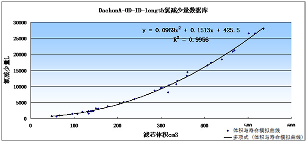 (1)燒結(jié)活性炭棒濾芯氯減少量與特定碘吸附值下堆積密度、過(guò)濾精度、體積等因素的數(shù)學(xué)模型。